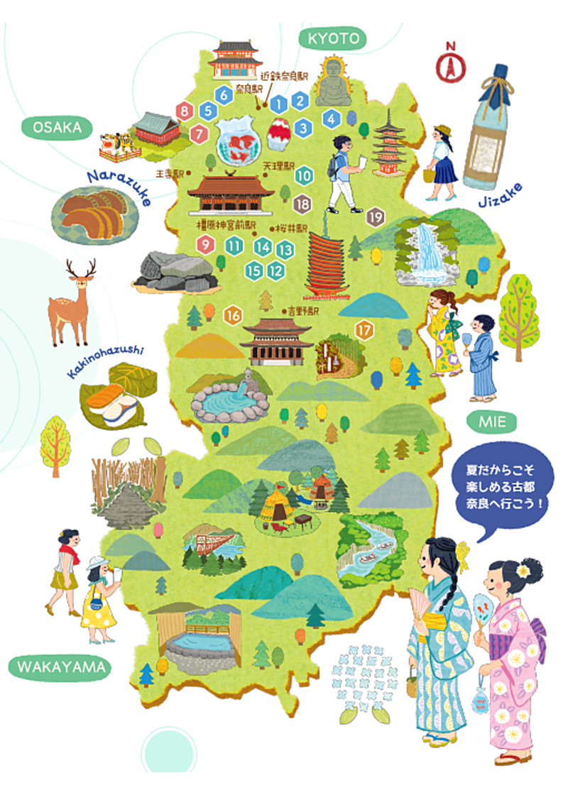 イラストのお仕事など、個人様・法人様問わずお気軽にお問い合わせください。 works ・観光冊子リーフレット イラスト (滋賀県大津市) ・東向商店街 リーフレット表紙デザイン ・奈良食べる通奈良のイメージイラスト 大仏の前でくつろぐ奈良県民のイラストではありません。 鹿の方が奈良県民より多いっていうのも、ガセ情報ですよ。 多分。 category 観光・遺産, 都市・街 タグ